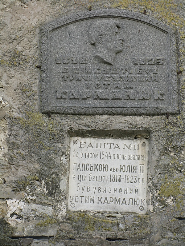 После заточения в Каменец-Подольской крепости Кармалюк вместе с другими заключёнными организовал свой четвёртый побег. 12 марта 1823 года, при попытке к бегству, был ранен, затем схвачен и прикован к каменному столбу в башне Юлия II (Папской, позже названной Кармалюковой).