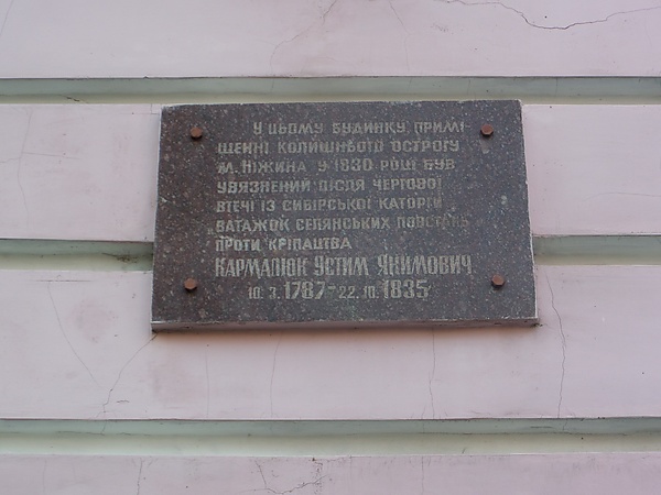 - Мемориальная доска на тюремном замке города Нежина.