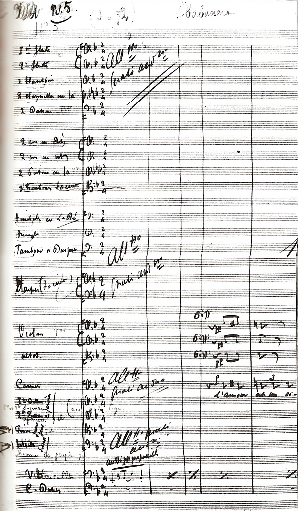 | 6 | Carmen! Sur tes pas nous pressons! | Scène | «Кармен! Мы встречаем тебя каждый раз» | Сцена | Хор горожан, работницы сигарной фабрики |