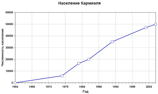 | 2003 год | население Кармиэля достигает 47 000 человек |