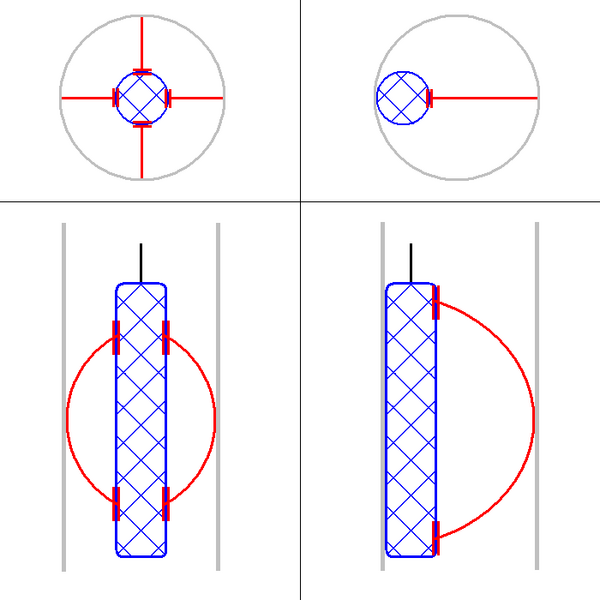В зависимости от каротажного метода может потребоваться либо центровка зонда по оси скважины (в этом случае зонд не должен касаться стенок скважины), либо наоборот — плотное прижатие зонда к стенке. В обоих случаях результат достигается с помощью рессор, размещённых снаружи корпуса. Для центровки на корпус крепятся четыре рессоры, размещённые в плане крестообразно, для прижатия к стенке скважины достаточно одной рессоры, размещённой сбоку.