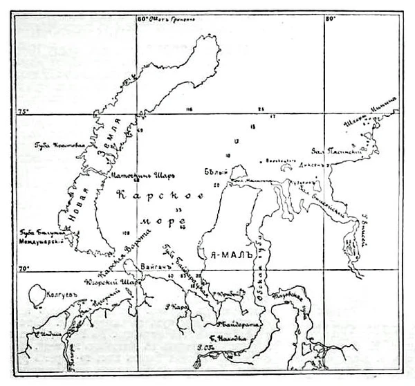 Карское море по своим физико-географическим условиям является наиболее сложным из морей Русской Арктики. Плавание по нему сопряжено с большими трудностями[60].