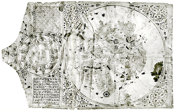 На карте де Вирги изображены Азорские и Канарские острова, Каракорум и другие восточные города (с названиями из книги Марко Поло), Япония (впервые в европейской картографии), а также традиционные локации средневековых легенд — царство пресвитера Иоанна, земля Гога и Магога, Эдемский сад (возможно, по описаниям Джона Мандевиля).