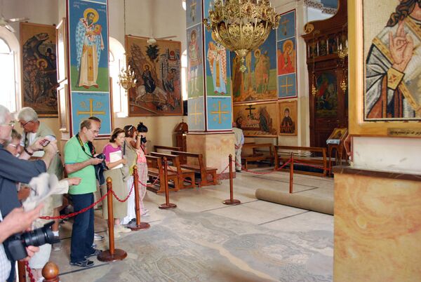Созданная византийскими мастерами в VI в. н. э., была заново открыта в 1894 году при строительстве современной церкви на месте более древней, относящейся к правлению династии Юстиниана I Великого. В центре карты — схематичное изображение Иерусалима, на котором выделяются Храм Гроба Господня и многочисленные городские ворота. Несколько в стороне можно разглядеть дельту Нила.