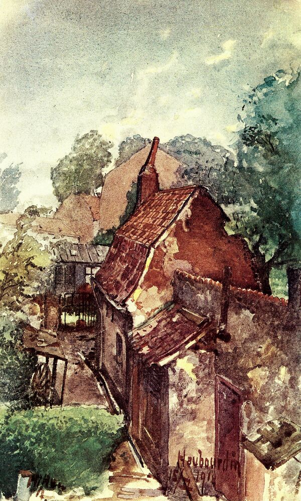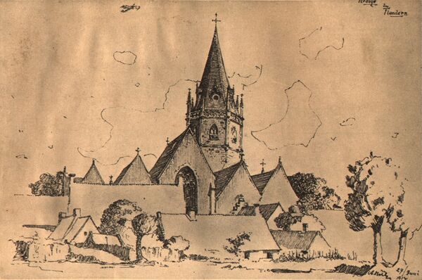 Когда Адольф Гитлер в 1914 году в 25-летнем возрасте по своему желанию пошёл на фронт Первой мировой войны, он взял с собой краски и занимался живописью в часы досуга. Работы, написанные им в этот период, были одними из последних, прежде чем он занялся политикой. Тематикой его военных рисунков были дома крестьян, передвижные полевые госпитали и так далее. Эти рисунки резко контрастируют с гораздо более «чувственными» ранними работами.