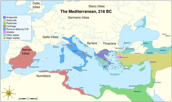 Карфагеняне плавали в разные места и подчинили себе южную Испанию, земли северной Африки, острова Сицилию, Сардинию, Корсику. Римляне называли карфагенян пунийцами. Вначале оба государства помогали друг другу в боевых действиях, но вскоре возникли трения из-за обладания островом Сицилия, а также влияния в других землях и морях.