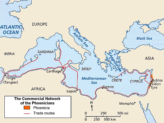 Для полного контроля над путем к Гибралтарe была создана особая система колоний-рынков. Примерно с 460 года до н. э. Ганнон мореплаватель начал образование колоний на атлантическом побережье Африки и совершил путешествие к югу от устья реки Сенегал (по некоторым интерпретациям доплыв вплоть до Камеруна). Брат Ганнона Гимилькон попытался достичь Эстримнии (Бретани, или же Корнуолла), однако его плавание было не таким успешным, северная торговля осталась в руках «союзного» Гадеса.
