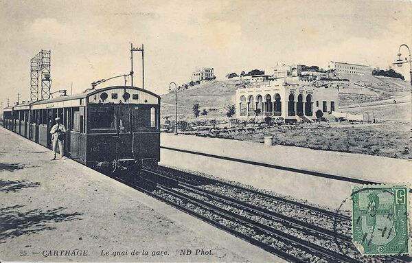 Карфаген обслуживается железнодорожной линией TGM, которая проходит через город и соединяет его с Хальк-эль-Уэд и Тунисом на юго-западе и Сиди-Бу-Саид и Ла-Марса на севере. В пригороде есть шесть железнодорожных станций: Карфаген Саламбо (названный в честь Саламбо, вымышленной дочери Гамилькара), Карфаген Бирса (названный в честь холма Бирса), Карфаген Дермех (Dermèche), Карфаген Ганнибал (названный в честь Ганнибала), Карфаген президентство (названный в честь президентского дворца) и Карфаген Амилькар (названный в честь Гамилькара)[148].