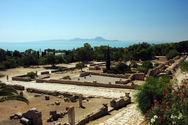 На протяжении своей истории Карфаген был столицей основанного финикийцами государства Карфаген, которое доминировало в значительной части юго-западного Средиземноморья в течение первого тысячелетия до нашей эры[4]. Тирская царевна Алисса, Элисса, или Дидона, считается основательницей города, хотя её историчность была поставлена под сомнение. Согласно записям Тимея из Таормины, Дидона была вынуждена покинуть родину; прибыв на берег современного Тунисского залива, она решила купить землю у местных племён под основание города. Ей разрешили купить лишь столько земли, сколько покроет одна бычья шкура. Тогда Дидона взяла и разрезала бычью шкуру на тонкие ремни, оцепила ими крутой прибрежный холм, где выстроила крепость, ставшую известной как Бирса. Именно с этой крепости и начинает свою историю Карфаген. Развившись, он основал империю и стал предъявлять притязания на власть в регионе, что стало единственной экзистенциальной угрозой Риму до прихода вандалов несколько столетий спустя[5].