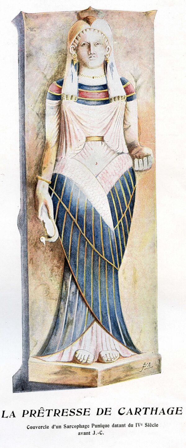 Французские раскопки в Карфагене начались в 1921 году, а с 1923 года сообщалось о находках большого количества урн, содержащих смесь костей животных и детей. Рене Дюссо определил стелу IV-го века до нашей эры, найденную в Карфагене, как изображающую жертвоприношение ребёнка[57].
