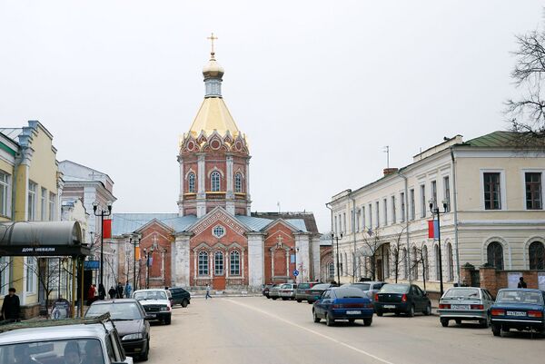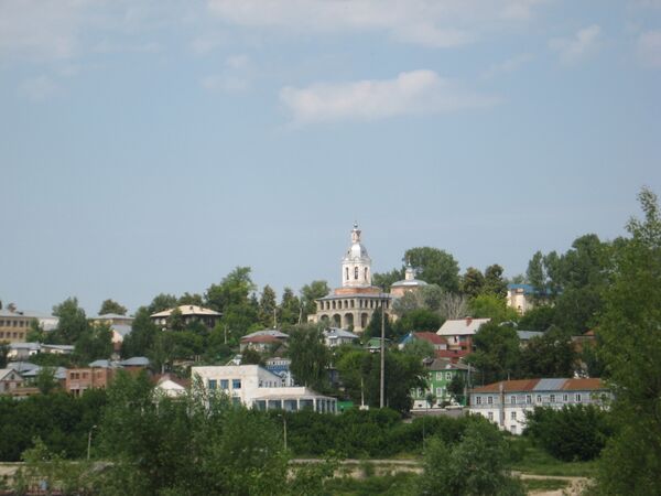 Успенский овраг делит исторический центр Касимова, расположенного на высоком правобережье Оки, на две части — «русскую» (северо-западную) и «татарскую» (юго-восточную)[54]. Первая из них ограничена с северо-запада ещё одним оврагом, Никольским. Основная часть архитектурных памятников этой части города находится на Соборной площади. Архитектурный ансамбль площади включает шесть памятников архитектуры федерального значения: Благовещенская церковь (1740 год), Успенская церковь (1775 год), дом Наставиных (1813 год, здесь проходили съёмки фильма «Инкогнито из Петербурга» по гоголевскому «Ревизору») и три корпуса Торговых рядов (1818—1824 годы). В центре обширной площади, занимаемой сквером, высится Вознесенский кафедральный собор (середина XIX века)[55]. В крайней южной части города, где стоит Богоявленская церковь (XVIII век), находился древний Городец-Мещерский[54].