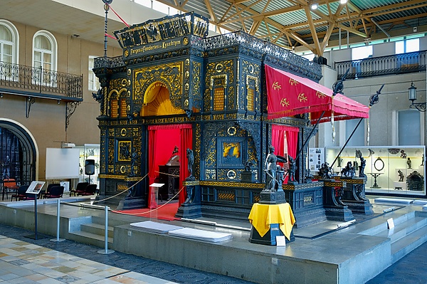 По состоянию на 2021 год, каслинский чугунный павильон стоит в центре зала чугунного литья Екатеринбургского музея изобразительных искусств на гранитном подиуме вместе со скульптурой Н. А. Лаверецкого «Россия», которая располагается слева от ступеней пьедестала и стоит на дополнительной тумбе[10].