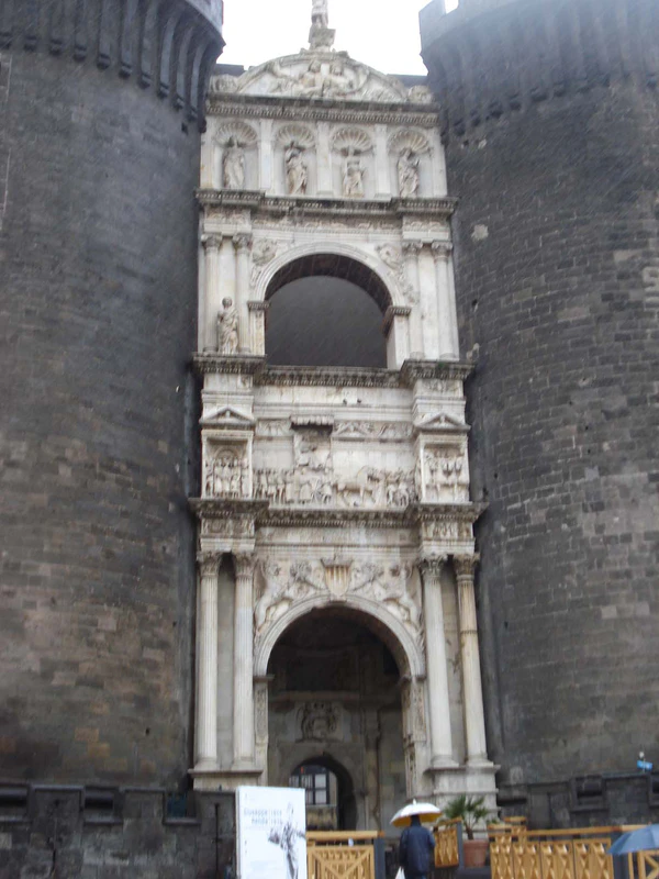 После различных улучшений, произведённых при короле Роберте, замок был разорён войсками Людовика Венгерского. Королева Джованна отстроила укрепления и выдержала в замке осаду венгерской армии. После ещё нескольких осад король Альфонс V велел укрепить замок на случай пушечного обстрела. При нём же над воротами появилась триумфальная арка с изображением его вступления в город — первое произведение ренессансной архитектуры в Южной Италии.