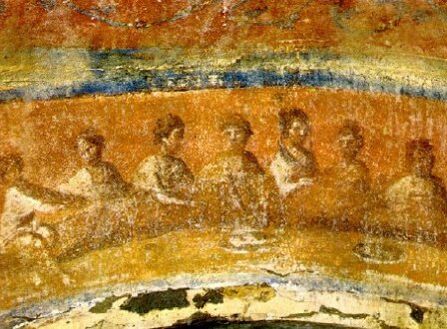 Наиболее интересна для изучения раннехристианской обрядности фреска II века с изображением агапы, обнаруженная в 1893 году[52].