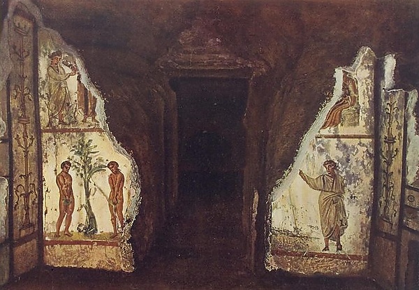 Исследователи отмечают, что христианская фресковая живопись в катакомбах представляет собой (за исключением новозаветных сцен) те же символы и события библейской истории, которые присутствуют в иудейских захоронениях и синагогах того периода[42].