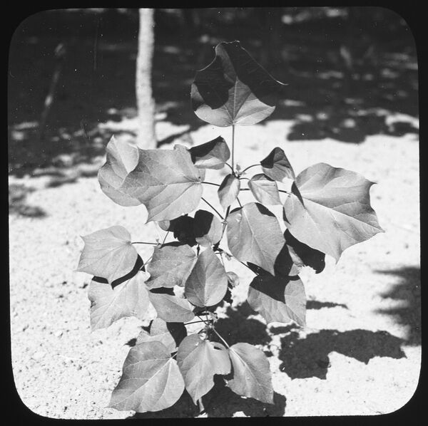 Листья широкояйцевидные с цельным краем, сердцевидным основанием и обычно с тремя лопастями с заострёнными верхушками, длиной и шириной 15—25 см, с черешком длиной 6—18 см. Поверхность шероховатая, редкоопушённая или голая. Вначале мелкоопушена и верхняя часть листа, в любое время опушение наиболее велико на жилках снизу. Выделяется 5—7 крупных жилок, расходящихся пальчато от основания, Листья расположены обычно попарно супротивно, иногда мутовчато[2][3].