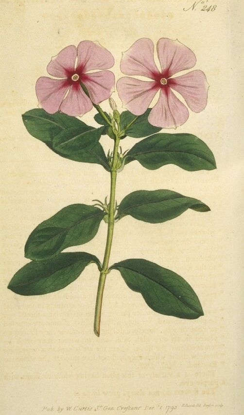 В садоводстве больше известен под названием барвинок розовый (лат. Vinca rosea).