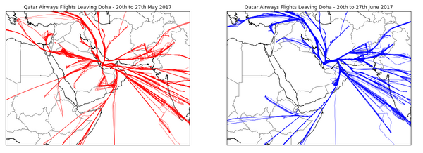 Авиакомпании Gulf Air[15], EgyptAir[16], Emirates, Flydubai, Air Arabia, Saudi Arabian Airlines и Etihad Airways приостановили рейсы в Катар и из Катара[17].