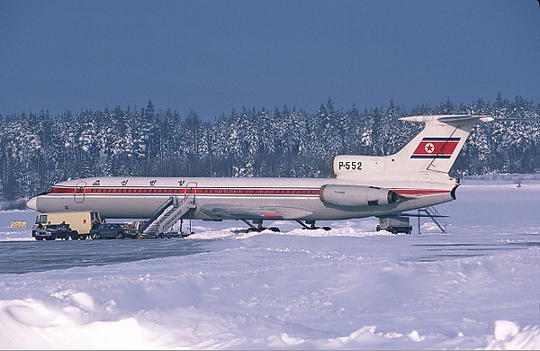 В это же время по рулёжной дорожке (РД) № 2 следовал Ту-154Б борт 551 северокорейской компании Chosonminhang, который ранее совершил посадку и теперь выруливал на РД № 1. Его командир Кравченко увидел несущийся на них Ту-104 и быстро перевёл средний двигатель во взлётный режим (левый и правый к тому времени уже были выключены). Ту-104 же в 92 метрах от точки первого касания врезался в землю носовой частью, а через несколько метров ударился о бетонные блоки, из-за чего оторвало часть левой консоли крыла. Пересекая РД № 1, Ту-104 промчался позади Ту-154, обломками повредив ему правый борт фюзеляжа и правую плоскость крыла. Вылетев с находящегося за рулёжной дорожкой склона высотой 4,4—5 метров, самолёт пролетел 30 метров и повторно врезался в землю в 480 метрах правее оси ВПП и в 80 метрах до траверза её торца. От удара фюзеляж разорвало на три части, из которых наиболее сильно пострадала средняя. Пожара при этом не возникло, так как экипаж успел перекрыть пожарные краны[2][3].