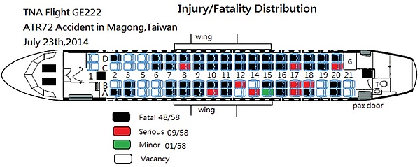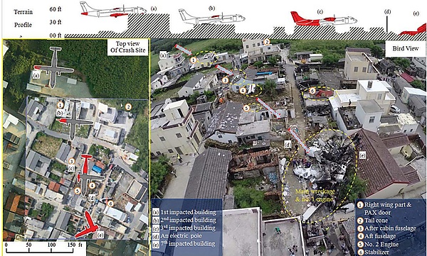 Происшествие произошло в результате контролируемого полёта на местности, то есть самолёт, находящийся под контролем экипажа, непреднамеренно вылетел на поверхность с ограниченной осведомлённостью экипажа о близости самолёта к земле. Экипаж продолжал заход на посадку ниже минимальной высоты снижения (MDA), когда они не были визуально знакомы с обстановкой на ВПП, что противоречит стандартным рабочим процедурам. В отчёте о расследовании был выявлен ряд факторов, способствующих и других факторов безопасности, связанных с лётным экипажем воздушного судна, полётными операциями TransAsia и процессами управления безопасностью полётов, передачей лётному экипажу информации о погоде, вопросами координации в гражданском / военном аэропорту совместного использования, и регулирующий надзор за TransAsia со стороны Управления гражданской авиации (CAA).