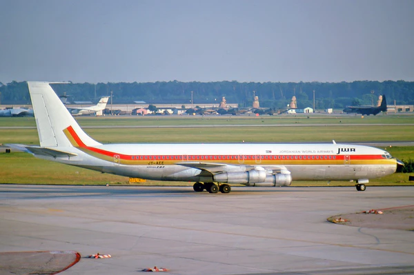 Boeing 707-321C с бортовым номером JY-ADO (заводской — 18767, выпущен в 1964 году) принадлежал иорданской авиакомпании Alia (ранее эксплуатировался в Pan Am под номером N797PA[1]) и был взят в лизинг марокканской Royal Air Maroc для перевозки марокканских рабочих-эмигрантов, возвращавшихся из Франции к семьям на период летних каникул. Всего на борту находилось 188 человек, из которых 4 пассажира были европейцами, 177 — марокканцами, и 7 членов экипажа. В 02:20 самолёт вылетел из парижского аэропорта Ле-Бурже[2][3].