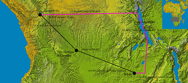 Борт SE-BDY авиакомпании Transair Sweden вылетел из Леопольдвиля в 16:51 CET и взял курс на Ндолу[2].
