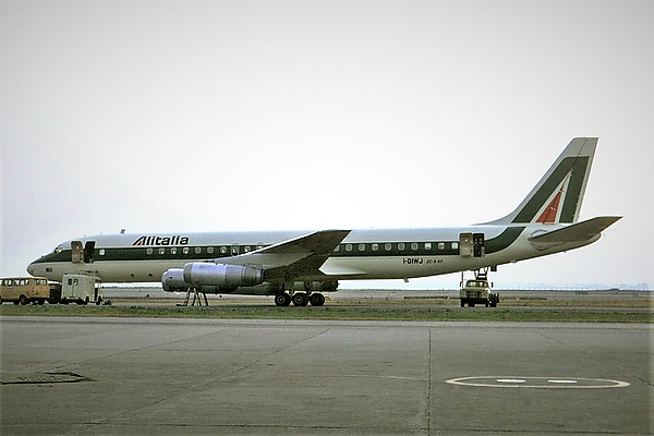 Douglas DC-8-43 с заводским номером 45625 и серийным 144 был выпущен 12 мая 1961 года. 31 мая авиалайнер продали итальянской национальной авиакомпании Alitalia, где он получил бортовой номер I-DIWB и имя Antonio Pigafetta[1]. На нём были установлены четыре двухконтурных турбовентиляторных двигателя Rolls-Royce Conway 508-12[2].