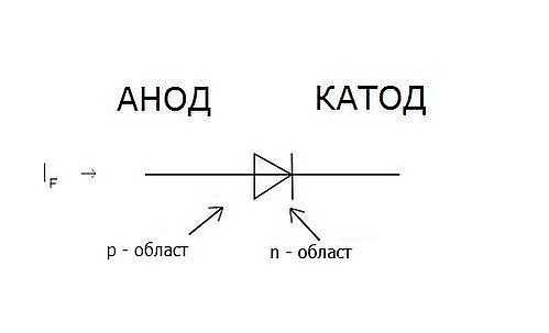 Электрод полупроводникового прибора (диода, тиристора), подключенный к отрицательному полюсу источника тока, когда прибор открыт (то есть имеет маленькое сопротивление), называют катодом, подключённый к положительному полюсу — анодом.