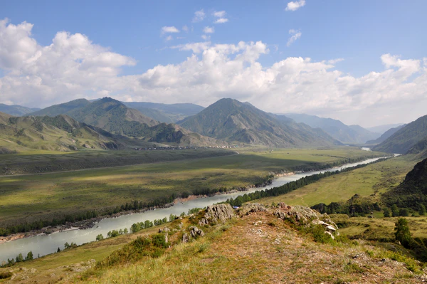 Катунь[2] (алт. Кадын) — одна из крупнейших рек на Алтае, главная водная артерия Горного Алтая. У юго-западных окраин города Бийска сливается с рекой Бия, образуя крупнейшую сибирскую реку Обь, которая несёт свои воды в Карское море Северного Ледовитого океана. Протекает по территориям Республики Алтай и Алтайского края. В административном отношении (начиная с истока) Катунь протекает по территориям Усть-Коксинского, Онгудайского, Чемальского, Шебалинского, Майминского районов Республики Алтай; Алтайского, Советского, Красногорского, Бийского, Смоленского районов Алтайского края.