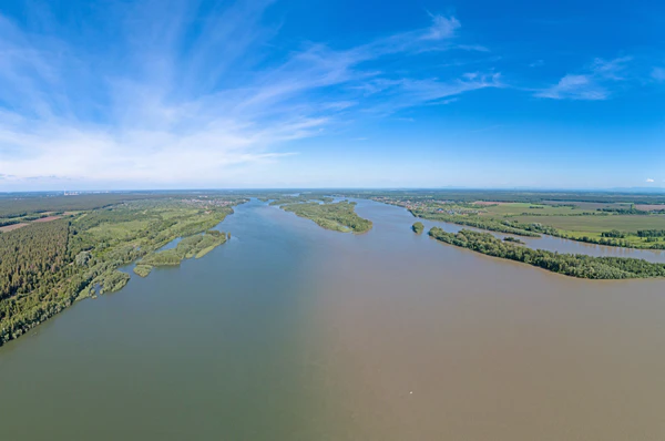 Место слияния рек Бии и Катунь выглядит очень живописно. Две реки, одновременно мощные, несут свои воды, сходясь в ещё более мощную струю — реку Обь. Обе реки имеют разный цвет. Летом и осенью Катунь — зеленоватый (бирюзовый), а Бия — белый (грязно-серый). Некоторое время реки несут свои воды почти не смешиваясь, образуя «полосатую» бело-зелёную струю. Весной нет такого контраста: воды Катуни мутные, серо-зелёные, а Бии — более чистые. На месте слияния находится остров Иконников, он имеет статус особо охраняемой природной территории (памятника природы)[18].