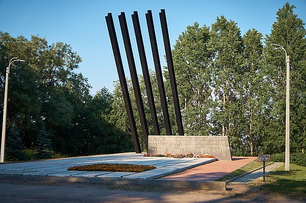 Мемориал представляет собой пять 14-метровых стальных балок, установленных на бетонном основании под углом к горизонту и символизирующих знаменитую реактивную установку. Надпись на гранитной стене гласит:
