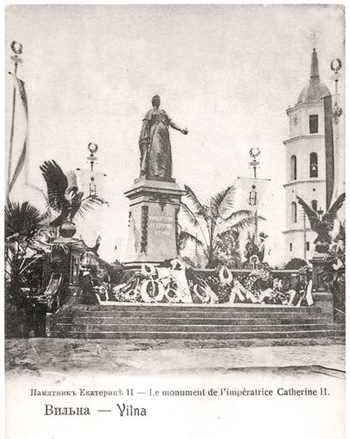 В 1902—1903 годах на части Кафедральной площади был устроен сквер овальной формы, а площадь была обсажена деревьями. В восточной части сквера в сентябре 1903 года (по другим сведениям в сентябре 1904 года[1][2]) был открыт памятник Екатерине Великой (скульптор Марк Антокольский) внушительных размеров: бронзовая фигура императрицы высотой 2,5 м, постамент из красного гранита высотой 4,3 м. Памятник был эвакуирован во время Первой мировой войны в 1915 году вглубь России.