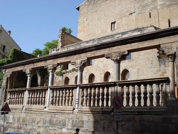От здания собора VII—XII века до нашего времени дошли лишь крипта, по форме которой и можно судить о первоначальном строении, и левая из четырёх колонн южного портика, на стволе которой вырезана цитата из Корана.