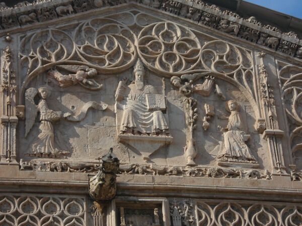 Западный портал собора был сооружён в 1352 году в готическом стиле, а обрамлён двумя малыми башнями-колокольнями, построенными между 1250 и 1342 годами. Башни украшены тонкой скульптурной лепниной, напоминающей исламские абстрактные и растительные мотивы. Четыре яруса башен украшены типично арабо-норманнскими арками и окнами-бифориями (то есть окнами, разделёнными пополам по вертикали узкой колонной)[7].