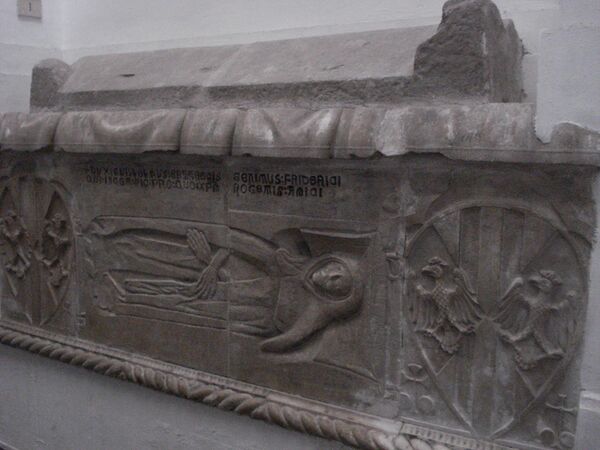 Констанция Арагонская и Вильгельм Афинский покоятся в мраморных античных саркофагах. Констанция Арагонская была погребена в роскошной золотой тиаре, богато убранной жемчугом и драгоценными камнями. Изъятая в 1491 году из гробницы тиара Констанции представлена в настоящее время в Сокровищнице собора.
