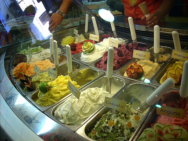 - Джелато — разновидность итальянского мороженого, в котором больше молока и меньше сливок, чем в американском мороженом.