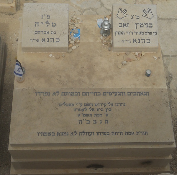 31 декабря 2000 года Биньямин Кахане и его жена Талия были убиты в результате обстрела их автомобиля арабскими террористами из «Подразделения 17» ("президентской гвардии Арафата"), пятеро их детей в возрасте от 2-х месяцев до 10 лет были ранены, один тяжело[2][3].