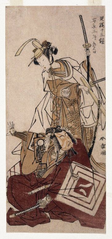 Основатель реалистической школы Кацукава. Он писал портреты актеров театра кабуки, куртизанок, борцов сумо, воинов и др.