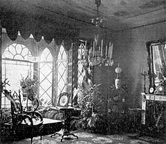 Сохранилось описание усадьбы этого времени. Всю центральную часть первого этажа занимал Летний зал, в котором росли тропические растения, стены увивал плющ, а по углам для гостей были расставлены диваны из красного дерева. Наверх вела широкая лестница, устланная красным ковром. На втором этаже располагался Рыцарский зал, стены которого были увешаны старым оружием и портретами полководцев, вельмож и гетманов. Далее располагалась галерея с бюстами предков Тарновского, начиная с коронного гетмана Яна Тарновского.[комм. 12] В зале-музеи стояла роскошная мебель, с сиденьями, которые украшали картинки цветов, фруктов и фантастических птиц, вышитых мелким бисером. Далее располагались парадная столовая с розоватыми колонами, в которой Глинка работал над «Русланом и Людмилой», библиотека, бильярдная и знаменитая комната «Фонарик» с цветными витражами в стрельчатых окнах. В картинной галереи дворца имелись работы кисти Теньера, Ван Дейка, Иванова, Брюллова, Кипренского и Айвазовского.[20]