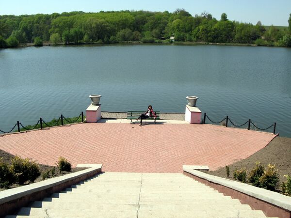 На нижнем ярусе расположен один из крупнейших пейзажных парков на Украине и в Европе. Его площадь составляет 560 гектаров. Он возник на основе природного леса и насчитывает более 50 пород деревьев и 30 видов кустовых. В формировании художественного образа парка особую роль играют хвойные породы, акклиматизированы в лесостепи — ель, европейский кедр, веймутова сосна, лиственница, сибирская пихта, кипарисовик орехоплодный. Из экзотов привлекают внимание бархат амурский, лох узколистный, птелея, катальпа. Из сооружений в этой части парка сохранились парковые мосты, горки Любви и Верности, «романтические руины» на берегу Большого пруда, которые являются памятником садово-паркового искусства XVIII века, носящего следы сентиментализма. Многочисленные живописные аллеи и дорожки пересекают парк во всех направлениях. Общая длина парковых дорожек — 60 километров.