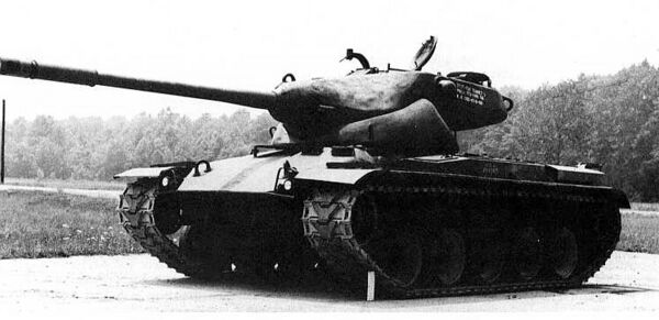 В США работы над качающимися башнями начались после передачи им французами в 1950 году второго прототипа AMX-13 для изучения[4]. Интерес к этой концепции в США был вызван прежде всего стремлением установить на танк автомат заряжания, обеспечивавший значительно бо́льший темп огня, чем при ручном заряжании. Попытки создать автомат заряжания для башни традиционной схемы, предпринятые в начале 1950-х годов, не принесли успеха — необходимость обеспечения подачи выстрелов в подвижное относительно автомата орудие вызывала усложнение механизма, и как следствие, его ненадёжность, поэтому разработанные для лёгкого танка T41 и среднего T42 автоматы заряжания были признаны неудовлетворительными[10][11]. Было решено обратиться к французскому опыту, и с 1951 года была начата разработка целого ряда проектов, использовавших качающуюся башню: легкий танк T71, средние T54E1, T69 и T77 тяжелые T57 и T58. В отличие от принятой на AMX-13 схемы, в США переместили магазин автомата заряжания под орудие, что позволило вести его перезарядку изнутри танка.