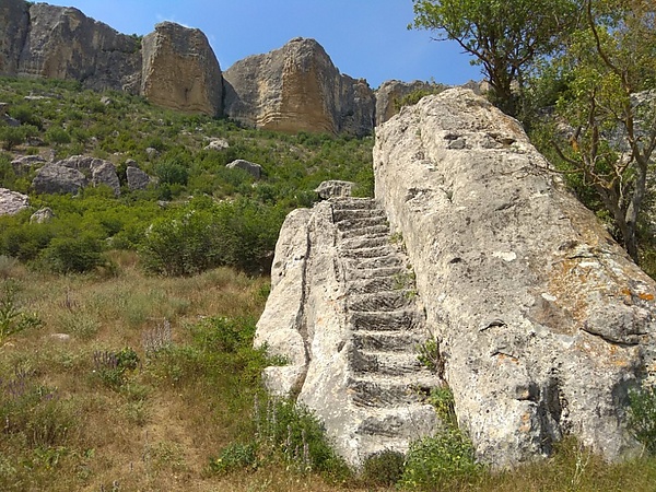 Е. В. Веймарн предполагал, что Баштановский могильник VI века на левом берегу Качи мог использоваться для захоронений и жителями Качи-Кальона[6]. Н. И. Репников считал, что поселение, устроенное в наземных постройках на террасированном крутом склоне долины (в скалах были вырублены хозяйственные и культовые помещения) существовало непрерыно с VIII по XVIII век[7], этого же мнения придерживался и В. Л. Мыц[8]. По результатам изучения памятника Е. В. Веймарном в поселении VIII—IX века (во время правления хазар) уже жили христиане, некоторые дома были крыты черепицей, выявлено 120 тарапанов (выдолбленных в скале винодавилен, в которых одновременно могло перерабатываться до 250 тонн винограда) — по этому показателю Качи-Кальон — крупнейший в то время в Крыму центр виноделия, вино изготовлялось на продажу. В IX—X веке в хозяйственной жизни селения заметен упадок (видимо, связанный с противостоянием усиливавшейся Византии и слабеющего каганата), торговые связи ослабевают, происходит натурализация сельхозпроизводства, в том числе сокращение виноделия[9], но существует мнение, что тарапаны могли сооружаться и гораздо позднее IX века[10]. В селении строится исар — укреплённый монастырь, оформляется типичный феодальный комплекс, в котором основная часть поселения располагалась прямо ниже монастыря. В восточной части предполагается наличие более крупных усадеб (возможно 15 штук — столько винодавилен найдено на этой окраине), и, судя по датировкам находок керамики, жизнь здесь прекратилась в XI веке[9]. О жизни селения в более позднее время сведений не много — археологические раскопки на его месте не проводились, все хронологические данные связаны со случайными находками, неизвестно также, была ли церковь св. Анастасии сельской, или относилась к монастырю[10].