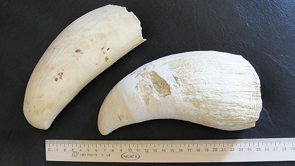 Зубы кашалота в странах Европы и Северной Америки во времена интенсивной добычи китов служили весьма дорогим поделочным материалом, ценившимся наравне с бивнем мамонта и моржовым клыком[82]. Из них изготавливали самые разнообразные костяные изделия, причём часто этим занимались умельцы из китобоев, занимавшие свой досуг во время плаваний резьбой по зубу кашалота. На китобойных судах зубы кашалота, а также челюстные кости (тоже применявшиеся для резных изделий) по традиции хранились у второго помощника капитана, который выдавал их только тем матросам, которые занимались резьбой. Зубы самцов ценились выше, чем зубы самок — хотя последние обычно мягче и легче поддавались обработке, они были менее стойки, вдобавок значительно меньше по размерам[80].
