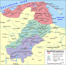 Относительно небольшая территория, на которой распространён кашубский язык, делится на ряд довольно сильно отличающихся друг от друга диалектов[27].