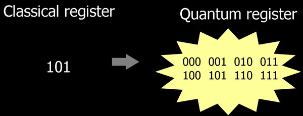 Идея квантовых вычислений состоит в том, что квантовая система из L двухуровневых квантовых элементов (квантовых битов, кубитов) имеет 2L линейно независимых состояний, а значит, вследствие принципа квантовой суперпозиции, пространство состояний такого квантового регистра является 2L-мерным гильбертовым пространством. Операция в квантовых вычислениях соответствует повороту вектора состояния регистра в этом пространстве. Таким образом, квантовое вычислительное устройство размером L кубитов фактически задействует одновременно 2L классических состояний.