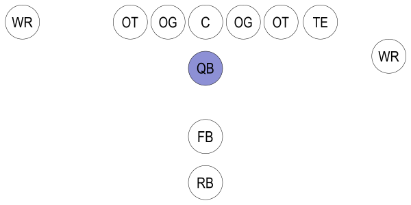 Модернизировал Т-формацию главный тренер «Чикаго Беарс» Кларк Шонесси во второй половине 1930-х годов. В его схеме квотербек получал снэп от центра и либо делал вкладку бегущему, либо отдавал передачу вперёд ресиверу. Эту позицию в команде занимал Сид Лакмен. В финале сезона 1940 года «Чикаго» выиграли у «Вашингтона» со счётом 73:0. После этого построение начало набирать популярность и к 1948 году Т-формацию использовали почти все клубы НФЛ. В конце 1940-х годов главный тренер «Кливленд Браунс» Пол Браун для защиты своего квотербека Отто Грэма разработал построение, получившее название «конверта». Игра команды строилась на длинных передачах после дроп-бека (англ. Drop back, несколько шагов назад, которые делает квотербек перед пасом)[13].
