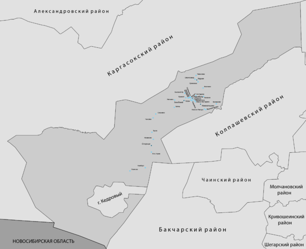 Го́род Кедро́вый — муниципальное образование со статусом городского округа[6] в Томской области России, город областного подчинения как административно-территориальная единица области[7][8].