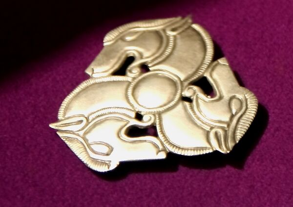 Сохранилось также несколько образцов подобных орнаментов на серебряных украшениях пиктов, в частности в захоронении Норрис Ло (VII век или ранее. Значительная часть была разграблена во время того, как был найден клад)[67] и в захоронении на острове Св. Ниниан (VIII век), в котором было найдено много брошей и чаш[68]. Уцелевшие предметы хранятся в Национальном музее Шотландии[69].