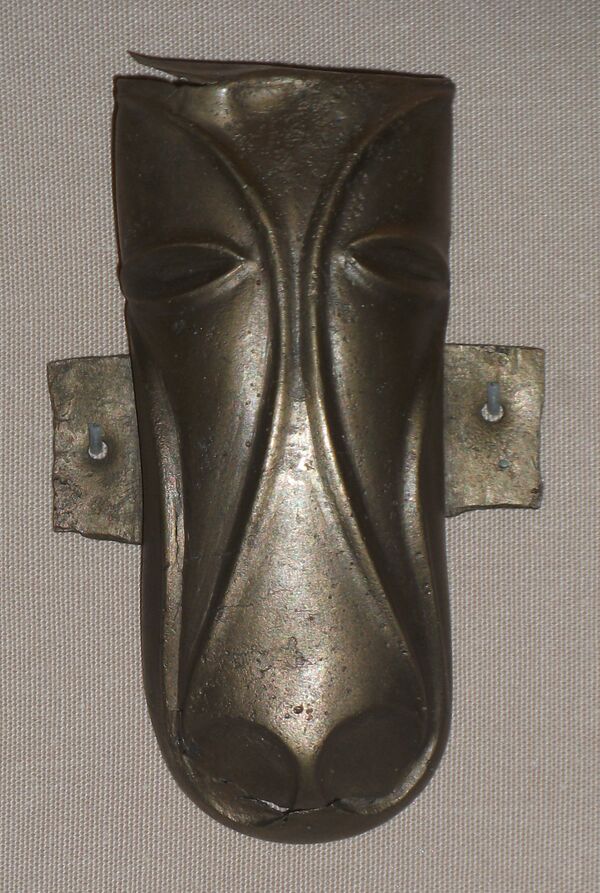 Работы раннелатенского стиля своими чертами и мотивами восходят к италийско-этрусским образцам, другими элементами они напоминают более отдаленное, греческое, а также иранско-персидское и среднеазиатское происхождение. Перед концом 5 века в кельтском искусстве появляется мотив человеческой маски. Иногда они увенчаны двулистной короной и сопутствующим ему мотивом так называемых «рыбьих пузырей». Археологи находили тонко отчеканенные маски из золота и бронзы, основа которых часто изготавливалась из железа, например, золотые пластины, найдены в кургане Шварценбах, а также выпуклые украшения конской сбруи (фаллары) из захоронения возле Подборжан в Чехии[4].