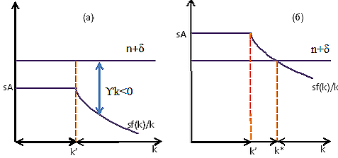 Величины процентных ставок являются экстремальными, но можно показать, что это явление переключения технологий происходит и в случае использования более умеренной доходности капитала.